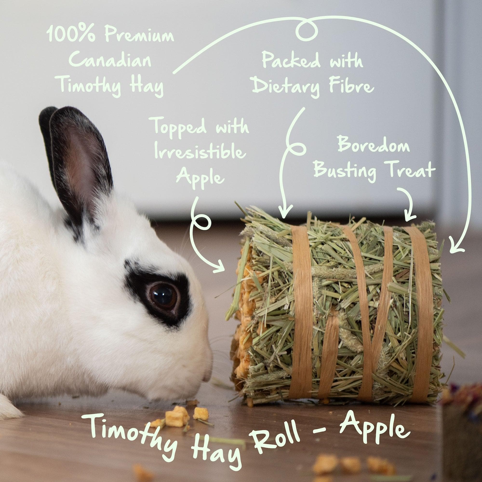 These beautiful rolls are formed under just the perfect amount of pressure to create a mini bale, bound using a 100% natural paper strap. They are topped with a generous portion of delicious apple.
