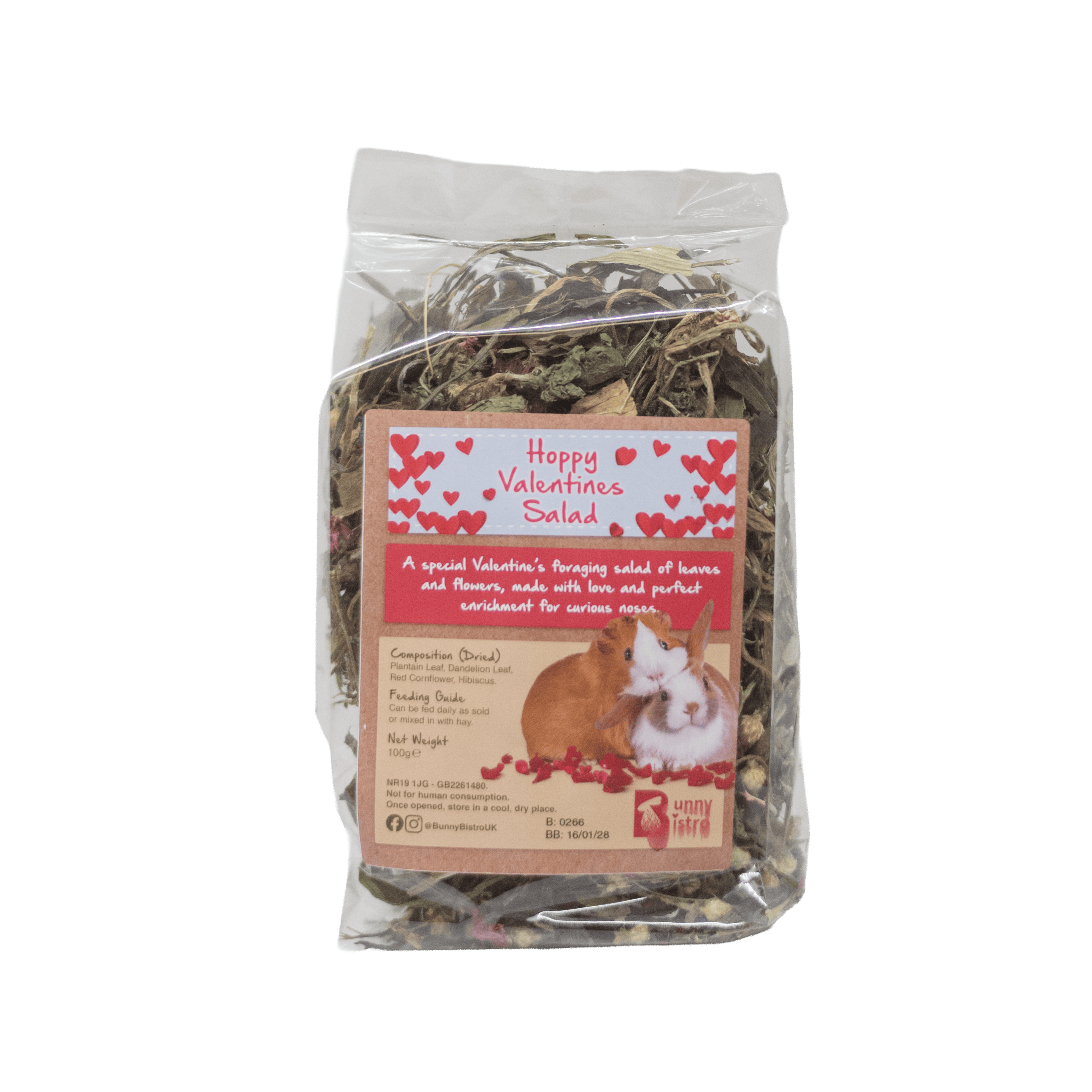 - Hoppy Valentines Salad 100g - A special Valentine's foraging salad of leaves and flowers, perfect enrichment for your furry friend. 💝